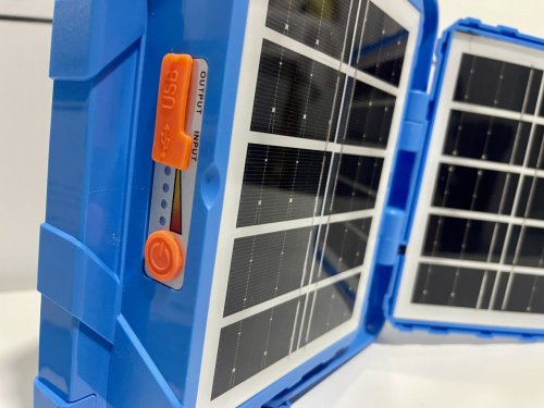 Įkraunas su USB (USB-C laidas komplekte) ir saulės baterija