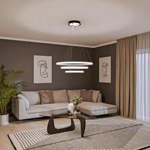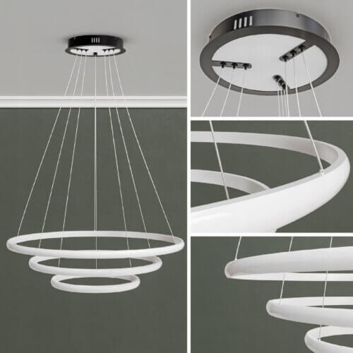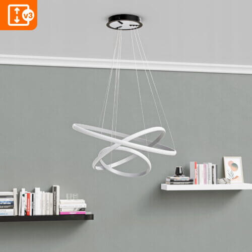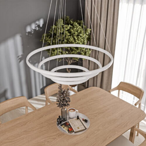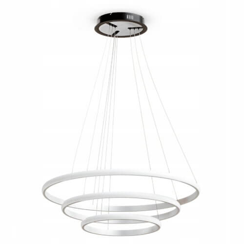 Išskirtinio dizaino 3 žiedų pakabinamas LED šviestuvas – tai modernios estetikos, didelės galios ir išmaniosios technologijos derinys, skirtas erdviems ir šiuolaikiškiems interjerams. Trijų skirtingų dydžių šviesos žiedai sukuria įspūdingą vizualinį efektą ir užtikrina itin ryškų bei tolygų patalpos apšvietimą.