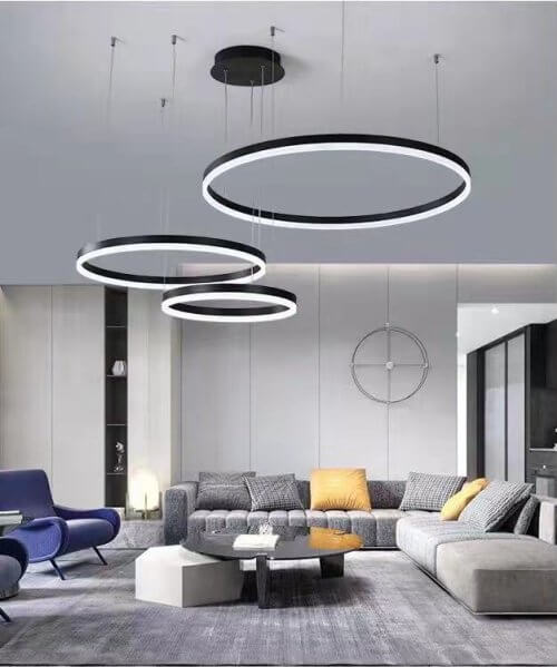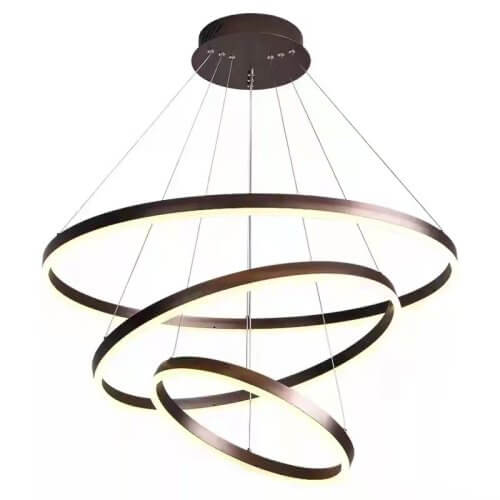 190W 3000K-4500K-6000K LED 3 žiedų pakabinamas šviestuvas juodos spalvos su nuotolinio valdymo pulteliu