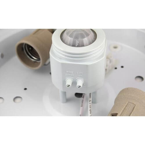 2xE27 PIR PC Šviestuvas su judesio davikliu paviršinis apvalus