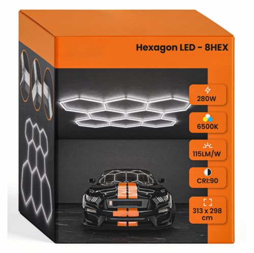 313 x 298cm 280W 6500K LED HEXAGON garažo apšvietimo komplektas