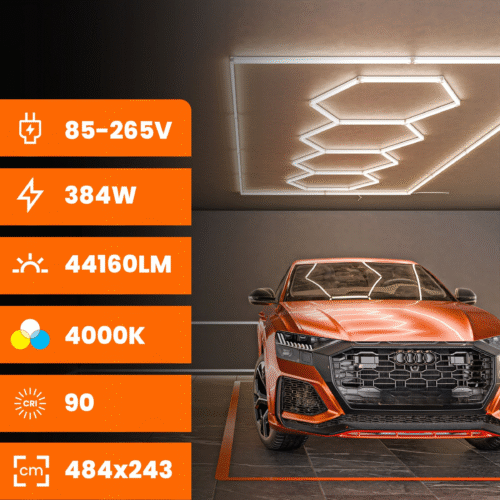 484x243cm 384W 4000K LED HEXAGON garažo apšvietimo komplektas