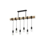 6 dalių E27 Pakabinamas šviestuvas juodas su medžio apdaila