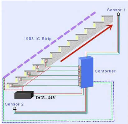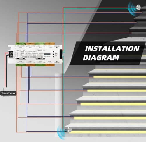 Laiptų apšvietimo kontrolės sistema 32 kanalų