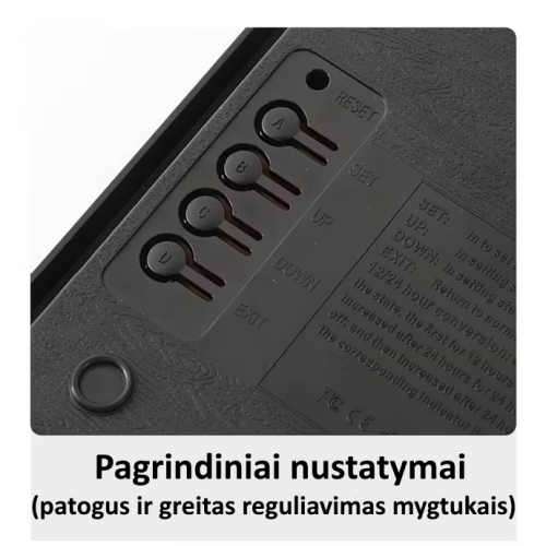 • Modernus ir ryškus dizainas – elegantiškas skaitmeninis ekranas suteikia aiškų ir lengvai skaitomą laiką, papildydamas bet kurį interjerą ar darbo erdvę.