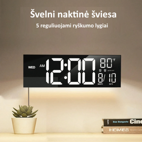 LED skaitmeninis sieninis laikrodis su pulteliu yra puikus pasirinkimas tiems, kurie vertina aiškų matomumą, modernų dizainą ir patogų valdymą. 11 cm aukščio skaičiai užtikrina, kad laiką matysite ne tik iš arti, bet ir iš didesnio atstumo. Tai ypač naudinga didesnėse patalpose, sporto salėse, biuruose, klasėse ar namuose, kur svarbu, kad ekranas būtų lengvai įskaitomas. Laikrodis turi švelnią naktinę šviesą, todėl neakina ir netrukdo miegui, o ryškumas išlieka komfortiškas bet kuriuo paros metu.