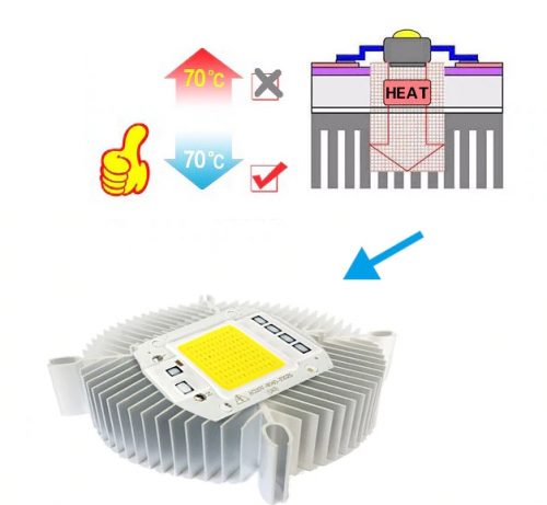 Ilgam diodo tarnavimo laikui užtikrinti reikia papildomo radiatoriaus ir aušintuvo.