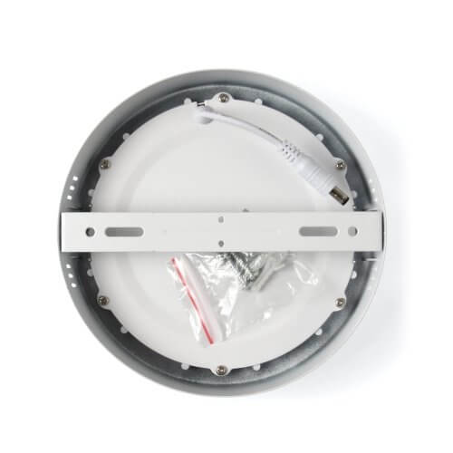 Virštinkinė LED Panelė. Ši panelė gali šviesti baltai, perjungus jungtuka įsijungia kartu balta ir mėlyna; įjungus trečią kartą švies mėlyna.